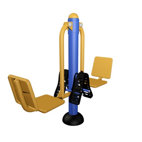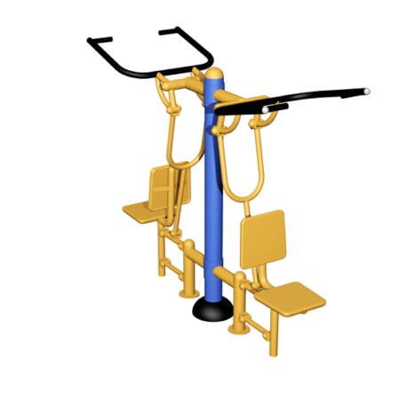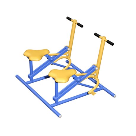 Ejercitador (Potro doble en tubo). Tubo central de 4" cédula 30, tubo de 2", potros con estructura tubular de 3", 2" y 1 1/2", cédula 30, asientos con placa de 1/4".