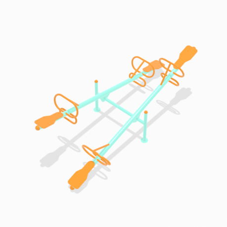 "Base metálica (sube y baja) dos agarraderas, dos posa pies, dos asientos de polietileno y estructura de metal tubular recto, dos postes y dos asientos de polietileno de alta densidad."