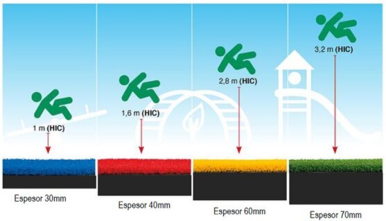 • Absorción de impactos: Esta es la principal ventaja. El caucho tiene una alta capacidad para amortiguar las caídas, lo que reduce significativamente el riesgo de lesiones graves en los niños.